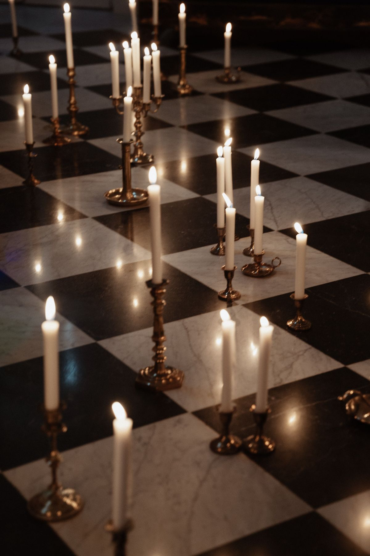 Декор строится на большом количестве свечей в канделябрах и стеклянных колбах.
