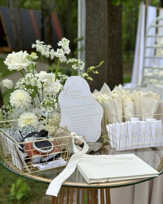 Альтернатива книге пожеланий. Каждый гость сможет написать короткое письмо или пожелание - фразу, совет, воспоминание или просто мысль, которую хочется передать паре в будущее. Вечером, ближе к концу праздника, ведущий вернется к теме времени и предложит Диме и Нике запечатать капсулу. Капсула будет храниться у пары до годовщины свадьбы - и через год они смогут открыть её вместе, перечитать пожелания, улыбнуться воспоминаниям и заново прожить этот день