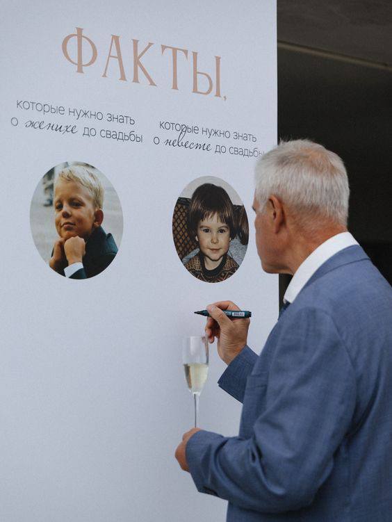 Каждый гость оставляет свой след - рисунок, подпись или пожелание на пиджаках Димы и Ники. Далее, пара наденет их на afterparty