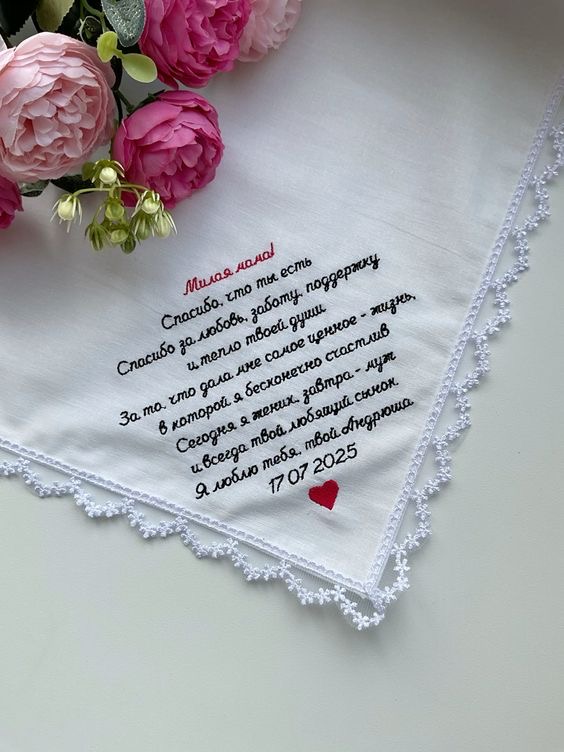 Можно выбрать готовый дизайн или создать уникальный текст - от короткой фразы до маленького послания, чтобы подарок стал ещё более трогательным
